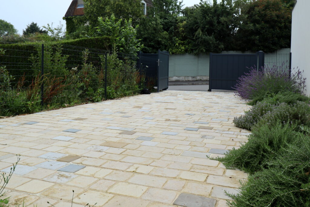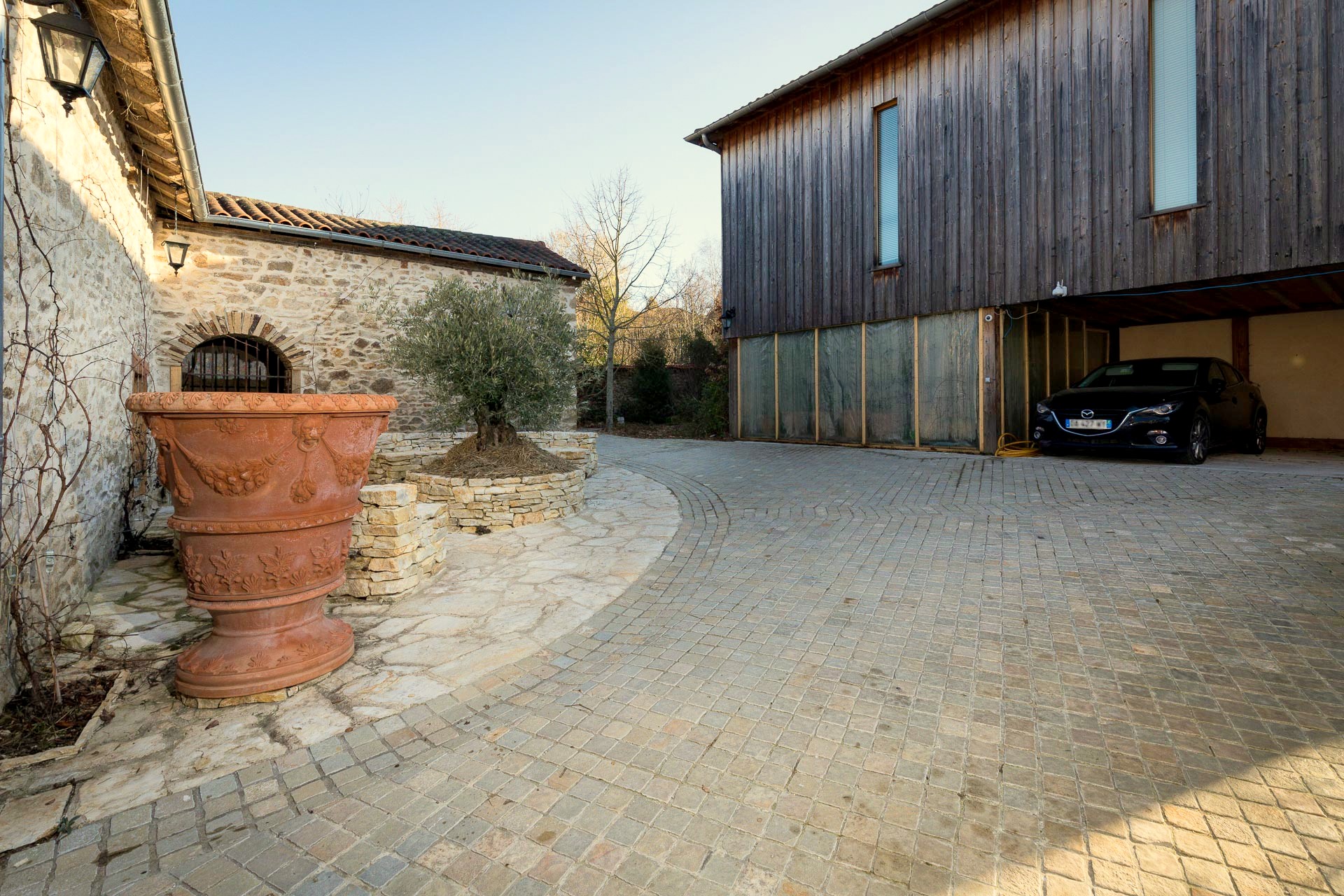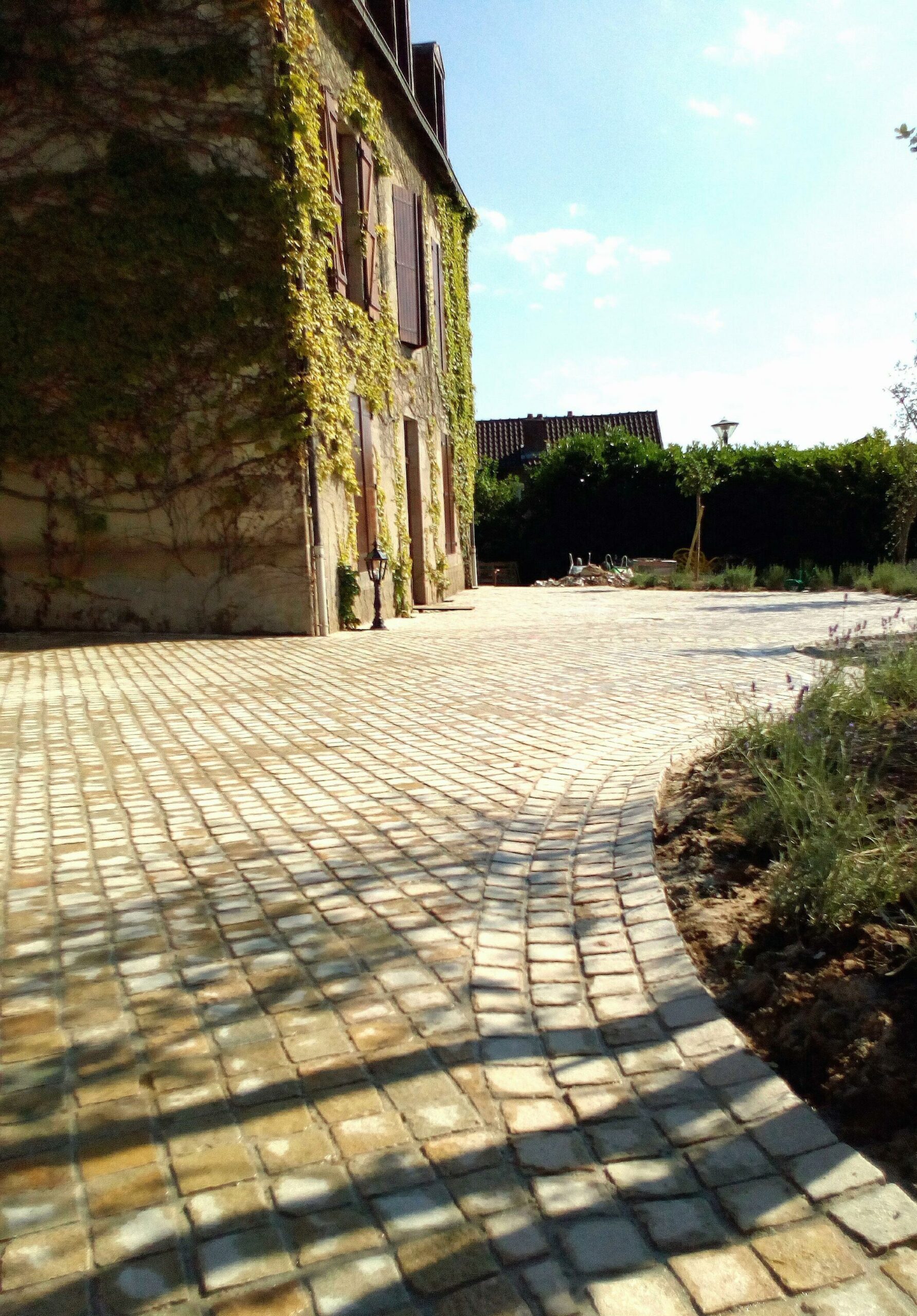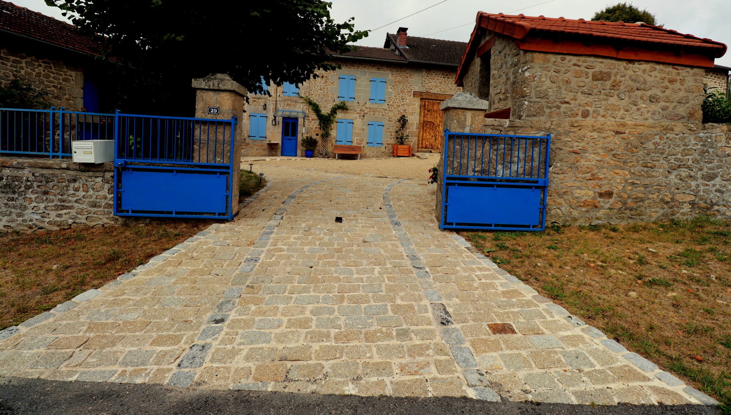 Réalisation d’une cour d’une maison typique du Limousin, en pavés granit ancien mixé avec pavés granit du Portugal. Récupération de pierres d’étables pour les zones maçonnées et réalisation du reste de la cour en 6.3/14 de la carrière LAMA. Réhabilitation du sens d’évacuation d’eau de la cour.